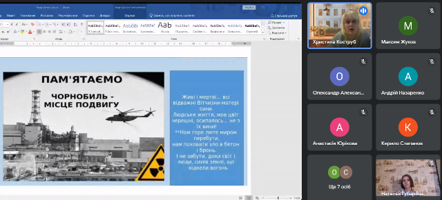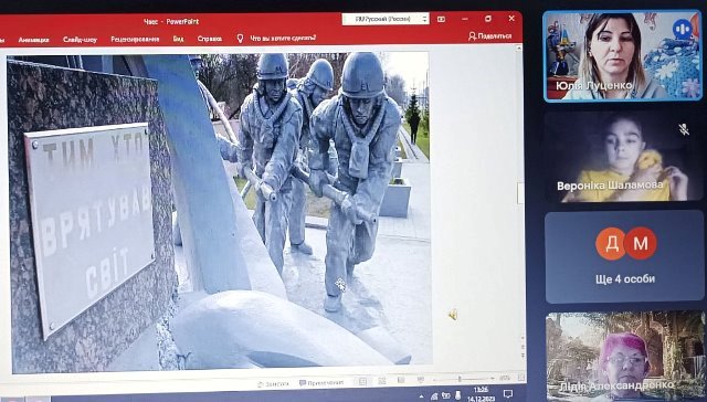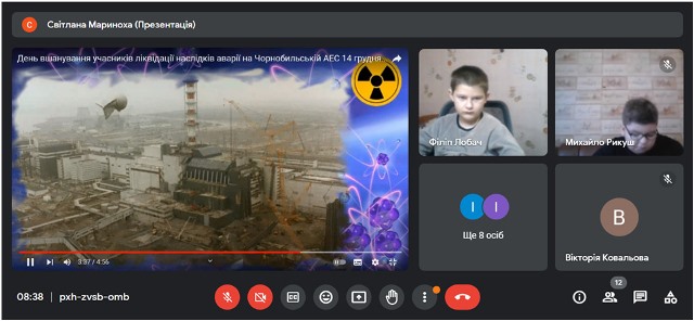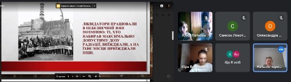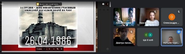 Ця пам'ятна дата була затверджена указом президента України 10 листопада 2006 року. Саме 14 грудня було офіційно повідомлено про завершення будівництва саркофага над зруйнованим у результаті вибуху четвертим енергоблоком ЧАЕС. Цей день пам'яті давно став скорботним нагадуванням всьому людству про важку перемогу над вогнем, яких охопив реактор атомної. Ця біда торкнулася сотень тисяч українців - ліквідаторів, переселенців, дітей та дорослих. Завдяки мужності ліквідаторів, ми сьогодні можемо з жахом згадувати про ті події. Без самовідданого героїзму тих мужніх людей, наслідки могли б бути набагато гірші. Сьогодні в нашій школі пройшли виховні години до Дня вшанування ліквідаторів наслідків аварії на ЧАЕС - людей, які ціною свого життя і здоров'я змогли здолати страшну трагедію 20 століття, що сталася 26 квітня 1986 року на Чорнобильській АЕС: "Збережемо Ваш подвиг ", «Твій біль, Україно, Чорнобиль», «Шана і подяка Вам, дорогі ліквідатори», «Чорнобиль: гіркий полин»; інформаційні хвилини «Трагедія Чорнобиля», «Наслідки аварії», «Пам’ятаймо! Вони захистили нас», «День вшанування учасників ліквідації наслідків аварії на Чорнобильській АЕС», "Чорнобиль - скорбота пам'яті", "Чорнобильська Мадонна". Висловлюємо слова щирої подяки усім ліквідаторам, хто зробив вагомий внесок у справу подолання наслідків Чорнобильської катастрофи. Водночас у житті українців Чорнобиль є і буде незагойною раною. Цей день вкотре нагадує про важливість особливих заходів безпеки у сфері використання мирного атома. Адже світ такий крихкий, а людство, впроваджуючи винаходи, має бути пильним, щоб не знищити планету.